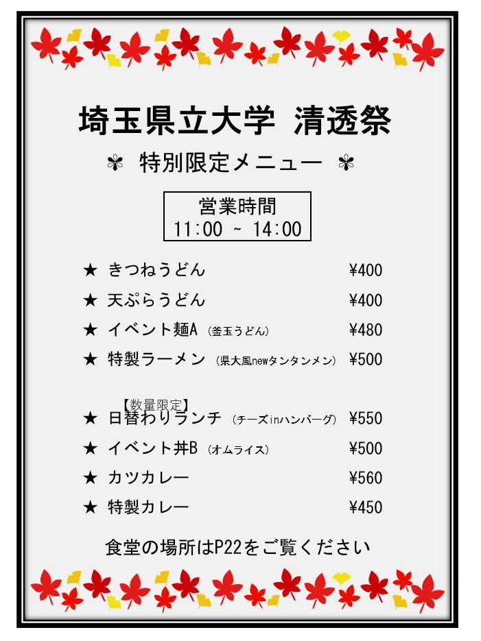 清透祭当日の食堂メニューになります。